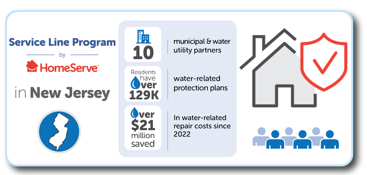 It’s well known that New Jersey is facing significant challenges with water and wastewater infrastructure, and homeowners are at increased risk of costly and unexpected service line issues. That’s why so many New Jersey municipalities have turned to HomeServe programs to help protect their residents. Our programs educate homeowners about their service line responsibilities and offer optional, affordable repair plans. If an issue occurs, repairs and replacements are performed by local, licensed plumbers.