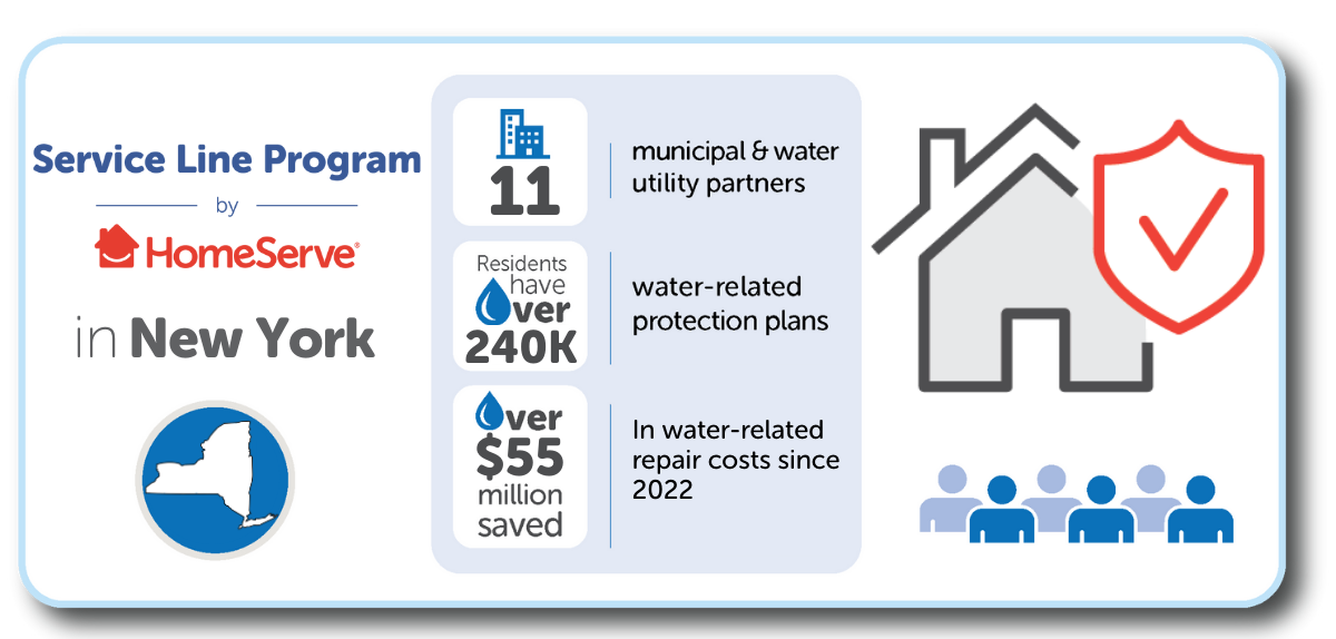 It’s well known that New York is facing significant challenges with water and wastewater infrastructure, and homeowners are at increased risk of costly and unexpected service line issues. That’s why so many New York municipalities have turned to HomeServe programs to help protect their residents. Our programs educate homeowners about their service line responsibilities and offer optional, affordable repair plans. If an issue occurs, repairs and replacements are performed by local, licensed plumbers.